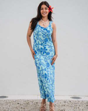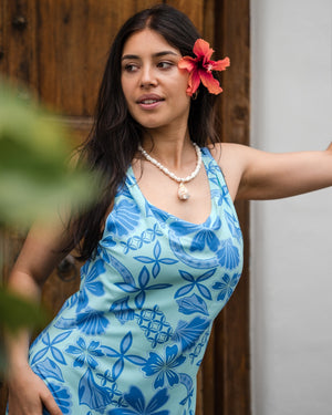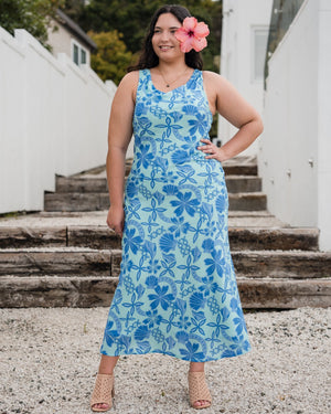 Island Paradise is a unique blend of shells, floral and Polynesian motifs that have us dreaming of sunny days by the beach or sipping cocktails poolside. This is the perfect island-style event wear print. Made from a super comfortable, soft flowing viscose fabric. Bring a touch of tropical vibes to your wardrobe!