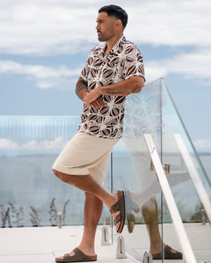 Amongst the swaying palm trees is the coconut brown and coconut milk palette. A warm, rich hue that evokes the natural tones of coconut shells and tropical landscapes. This colour features deep, earthy undertones reminiscent of dark chocolate and the rich soil of the land, giving it the ultimate island essence. This colourway captures the essence of sun-kissed beaches and lush palm trees.
