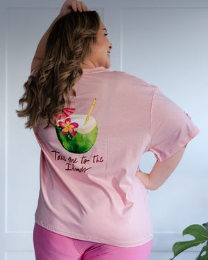 For the ultimate island dreamer and girly girl at heart, this tee is your tropical escape in cotton form. Dreaming of sipping on a fresh coconut Nu this vibrant graphic tee is a soft yet vibrant pink, the back features a refreshing green coconut topped with a straw and a sweet frangipani flower—complete with the dreamy slogan Take Me to the Islands beneath. The front keeps it simple and chic with the Islakoko logo and a delicate frangipani bloom. Finished with our signature Koko Club woven label on the sleeve, this tee is your go-to for sun-chasing, beach days, and coconut-sipping in style.
