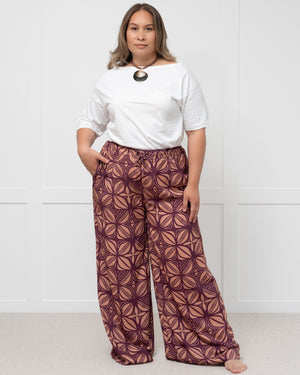 A new expression of ISLAKOKO’s signature print, Pacific Floral in Violet Dawn showcases a refined harmony of colour and culture. This two-tone design pairs soft violet with a rose-toned warm clay, creating a gentle yet striking balance of calm and warmth. Featuring the Polynesian flower symbol, the print embodies strength, femininity, and connection to nature — a timeless reflection of Pacific heritage. Elegant and contemporary, Violet Dawn perfectly represents ISLAKOKO’s modern island spirit.