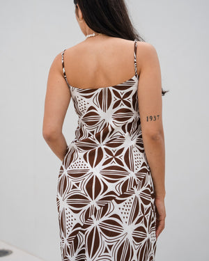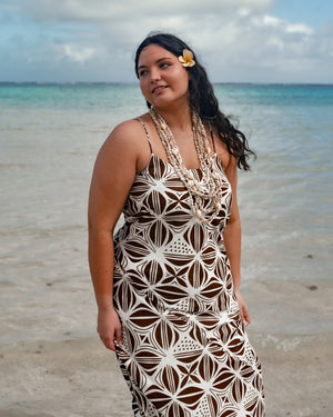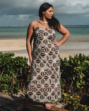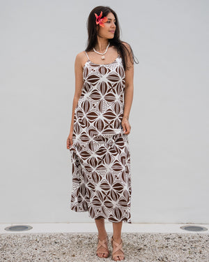 The island-style Amy maxi dress perfectly blends tropical charm and contemporary elegance. This dress features a stunning bias cut silhouette, double lined with a built-in slip underneath, delicate adjustable shoestring straps that gracefully accentuate the shoulders, providing a relaxed and comfortable fit ideal for summer evening wear or a stroll through the markets.